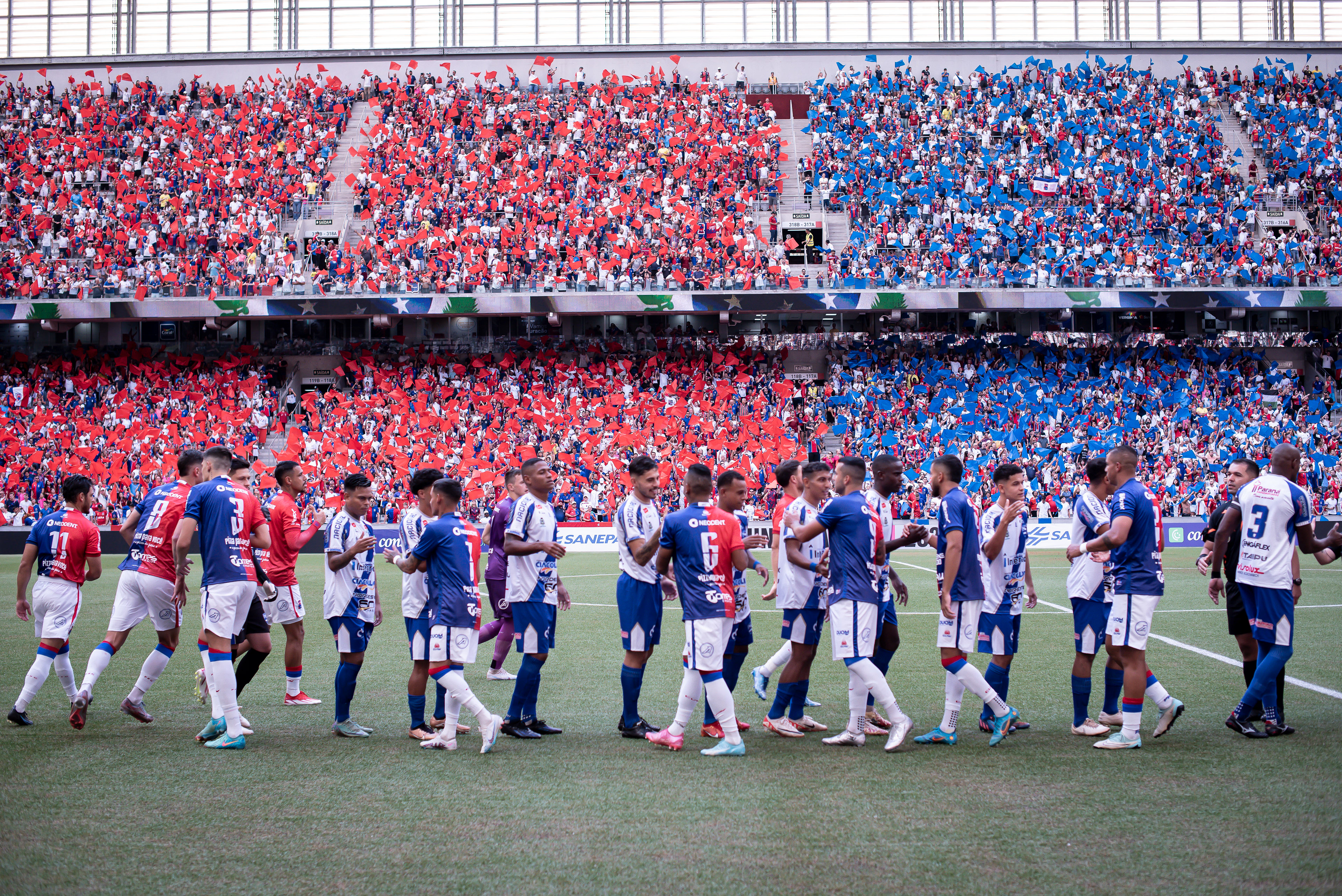 The first jersey is a celebration of the strength of our fans, the deepest root of Paraná Clube. Featuring the traditional half-blue, half-red design, it is a true manifesto of passion.