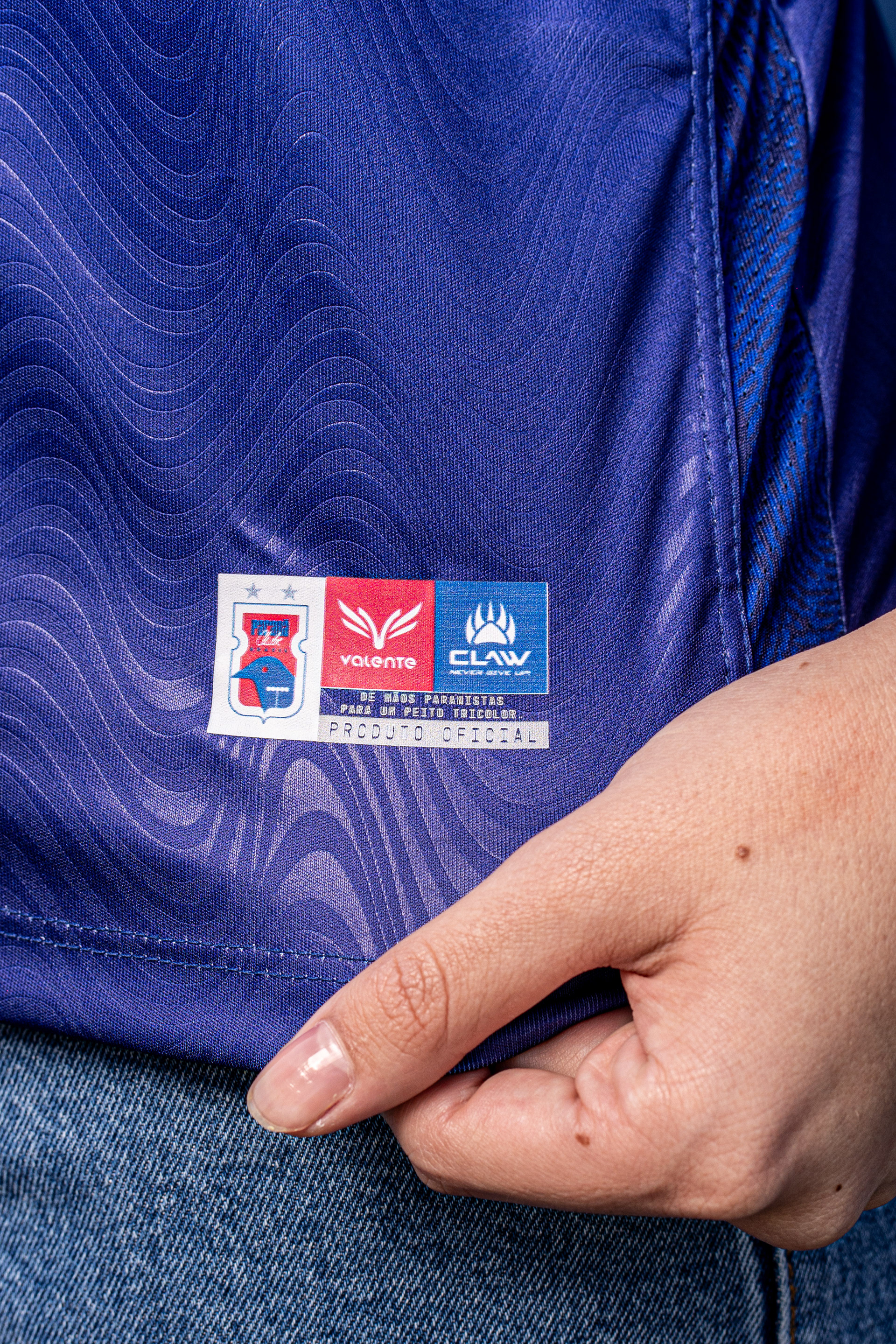 Completing the design, the vertical "PARANÁ" inscription evokes the nostalgia of the first jersey in the club's history — a direct return to our roots. The aesthetic is enhanced by a subtle gradient and darker tones on the collar and cuffs. Furthermore, the fabric itself features an organic texture, visually connecting with the fingerprint concept. It is the ultimate representation of the Paraná fan, the one who faces adversity without ever giving up their love for the Tricolor da Vila