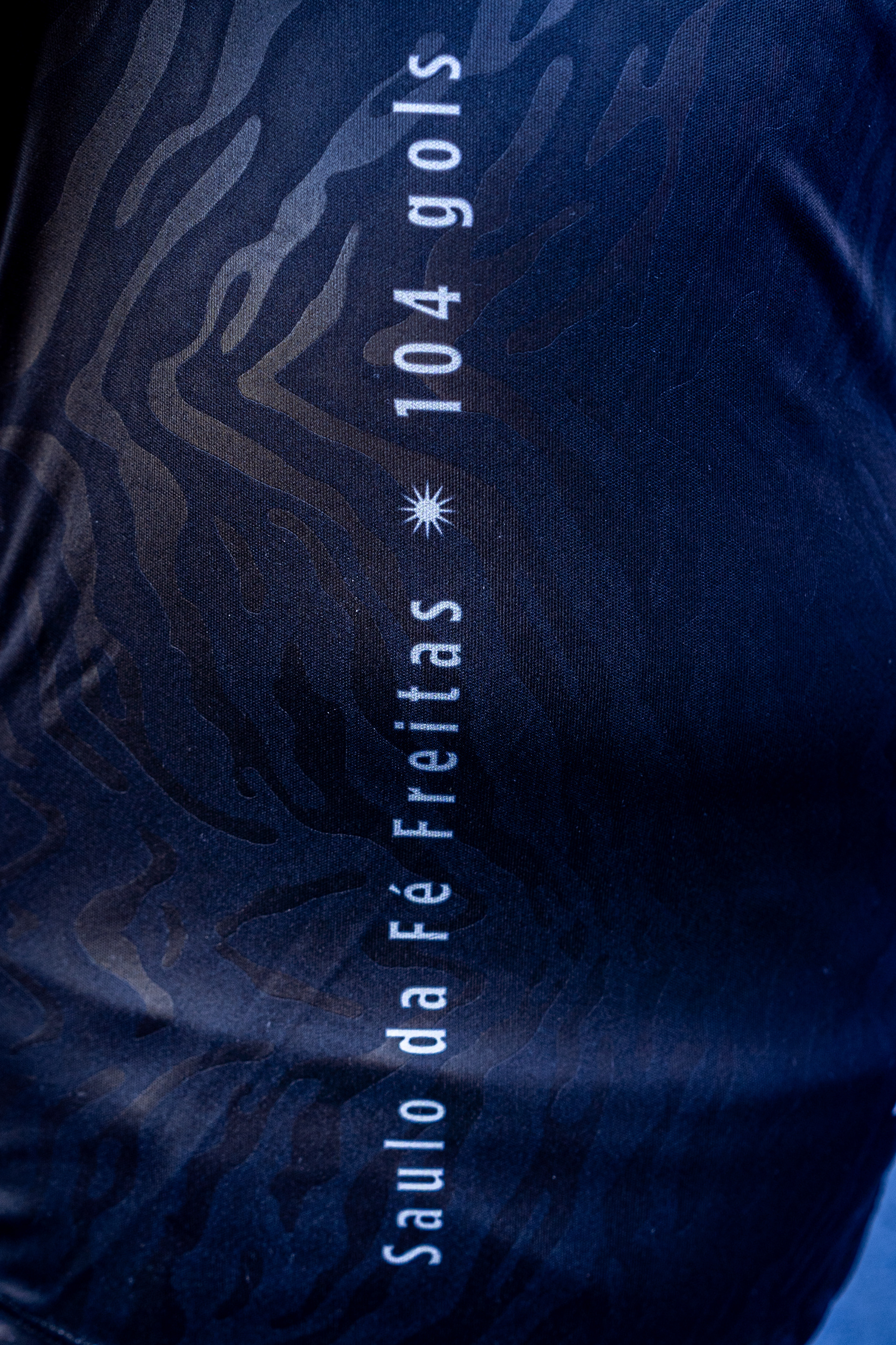 Completely black with a tiger stripe texture on the fabric and crest , the piece is a statement of strength. To immortalize this legacy, the kit features a special inscription: "Saulo da Fé Freitas * 104 gols" (104 goals). It is the perfect representation of someone who has always been at the top of the food chain in the penalty box.