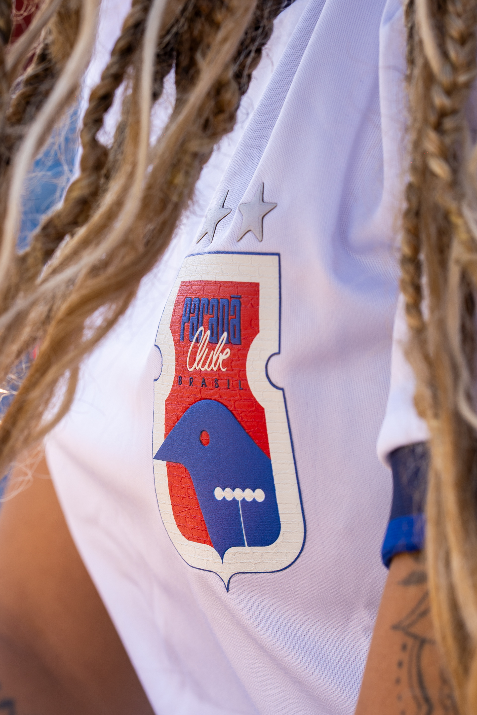 Esse detalhe evoca a solidez e a tradição da casa da nação paranista — e o olhar mais atento poderá identificar esses mesmos tijolos compondo o cenário de algumas fotos oficiais desta coleção. É a representação do lugar onde o paranismo é vivido e compartilhado por toda a torcida.