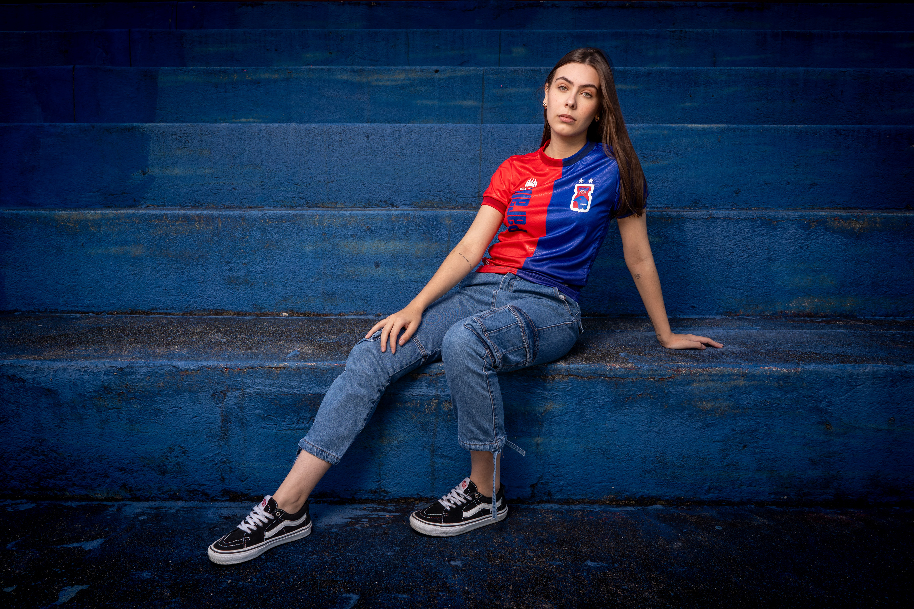 A grande sacada criativa desta linha está na camisa titular ser roxa, uma cor que representa a fusão direta e literal das nossas cores tradicionais: o vermelho e o azul. Para diferenciar as peças dos goleiros das camisas de linha, utilizamos uma textura vertical exclusiva no tecido, garantindo um visual imponente. A coleção se completa com mais quatro opções de cores (azul, vermelho, cinza e amarelo), proporcionando variedade sem perder a identidade e o estilo.